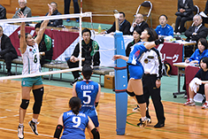 矢野の移動攻撃、坂下のブロックポイントなどで得点するもサーブレシーブが返らない。