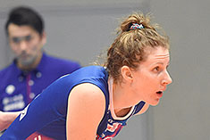 江畑、山下に代わって島畑、津賀が二枚替えで入り、ドリスのブロック、津賀のスパイクで7-12。追いつきたい場面だったがミスなどで失点。8-15で第五セットを落とし、セットカウント2-3で惜しくも敗戦となった。(累計ポイント: 4)