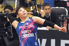 清水に代わり村上が入り、ドリスがブロードで加点するもディグが上がらず12-14。秋山がブロック、スパイクを決め同点に追いつくが、ミスから流れを掴めず18-20で終盤へ。