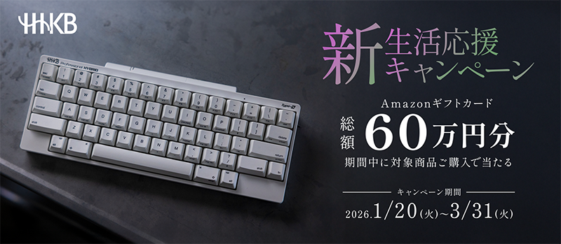 キャンペーン期間中に対象のHHKBシリーズをご購入・ご応募いただいた方に、抽選でAmazonギフトカード40,000円分を10名様に、10,000円分を20名様にプレゼント!