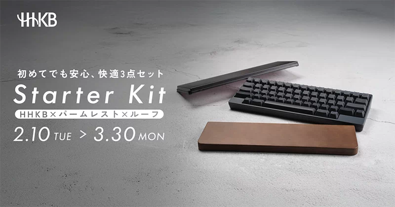 ——そんな皆さまを応援するため、HHKB本体と人気オプション(パームレスト・キーボードルーフ)を組み合わせた「スターターキット」を2月10日より特別価格にて限定販売を開始しました。