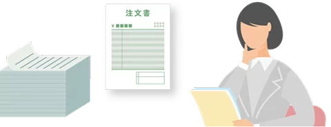 受発注から売上・請求まで、紙・メール・Excel・複数システムを行き来しながら行っている入力・転記・確認・突合せなどの業務を自動化します。