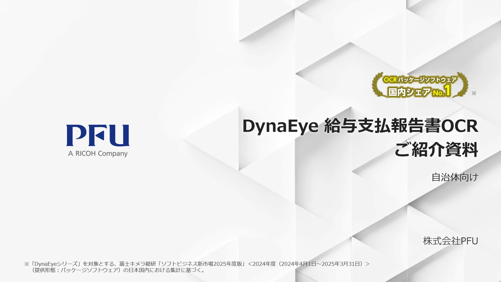 給与支払報告書専用のAI-OCRソフトウェア「DynaEye 給与支払報告書OCR」のご紹介資料です。