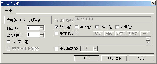手書きANKSおよび活字ANKSのフィールドには、カテゴリ選択より更に詳細に認識対象とする字種を限定する方法として、列挙型の字種限定テキストを使うことができます。