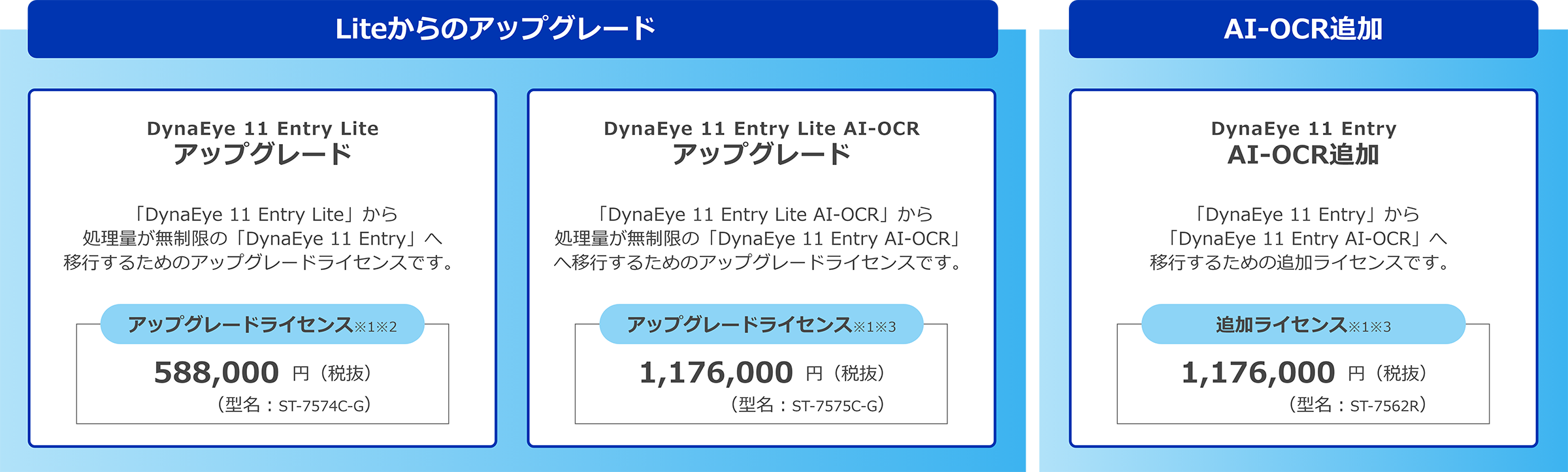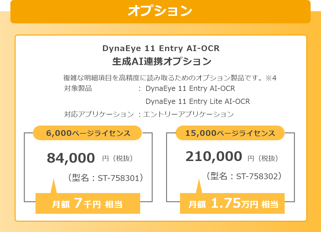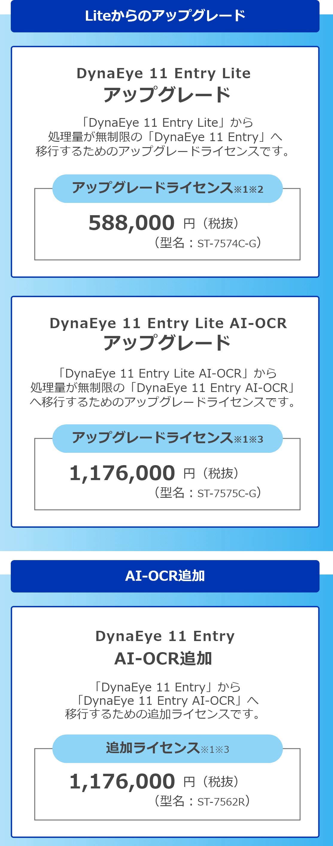 - 2年目以降は「DynaEye 11 Entry AI-OCR 継続ライセンス」の購入が必要です。