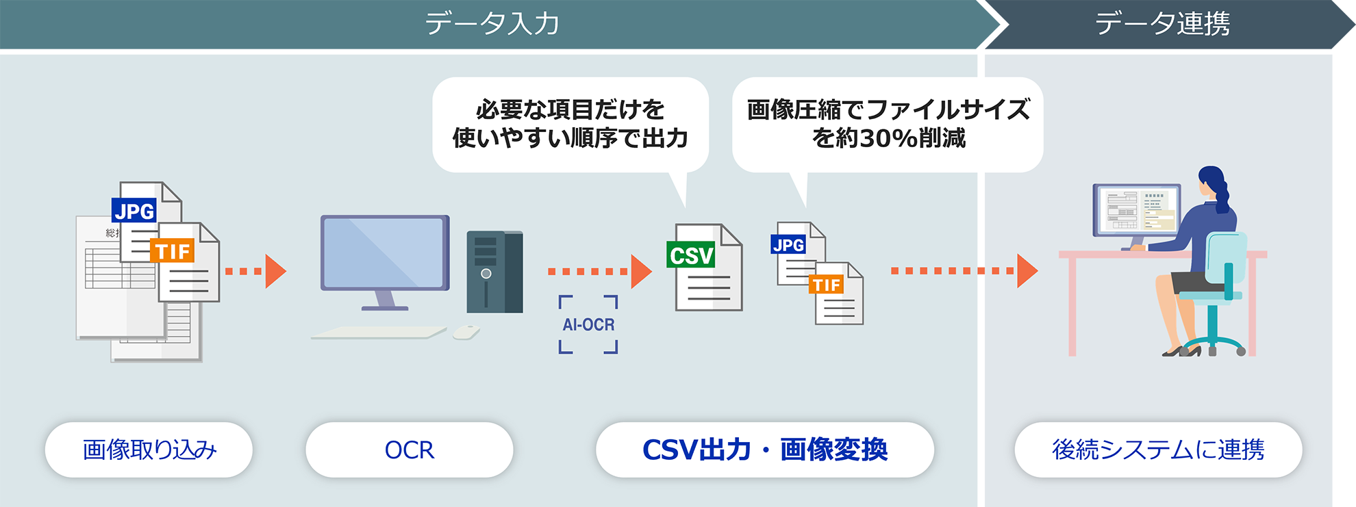 また、認識に使用した画像ファイルを低解像度に変換して保存する機能を搭載。解像度を下げることでファイルサイズを約30%削減※し、保存容量が不足するお悩みを解消します。