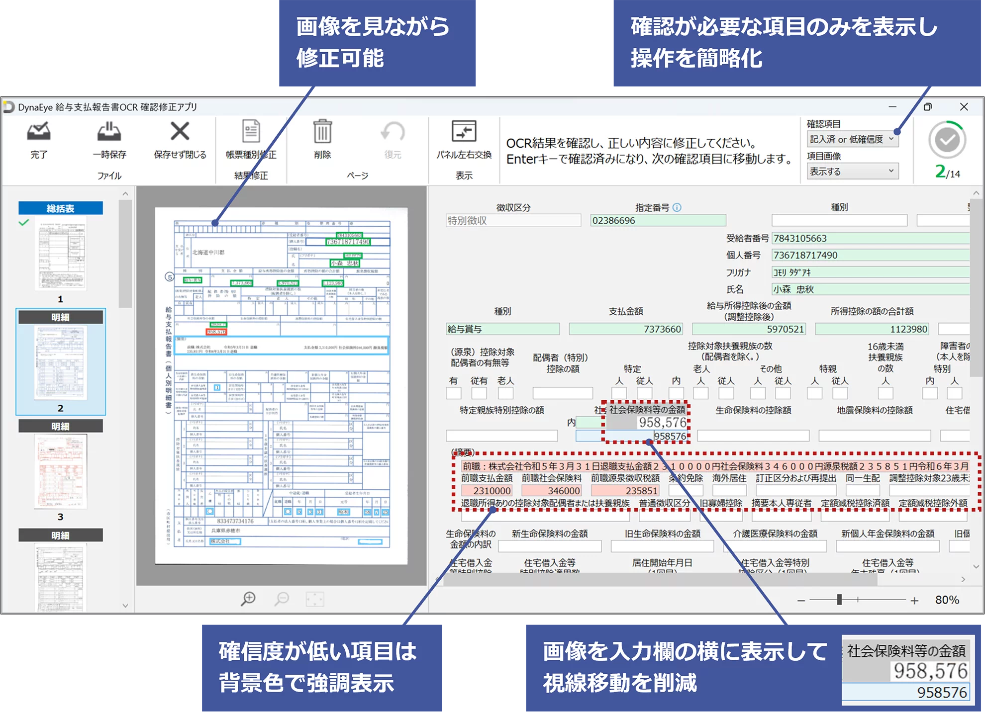 摘要欄にも対応し、個人別明細書の129項目※1を高精度に認識