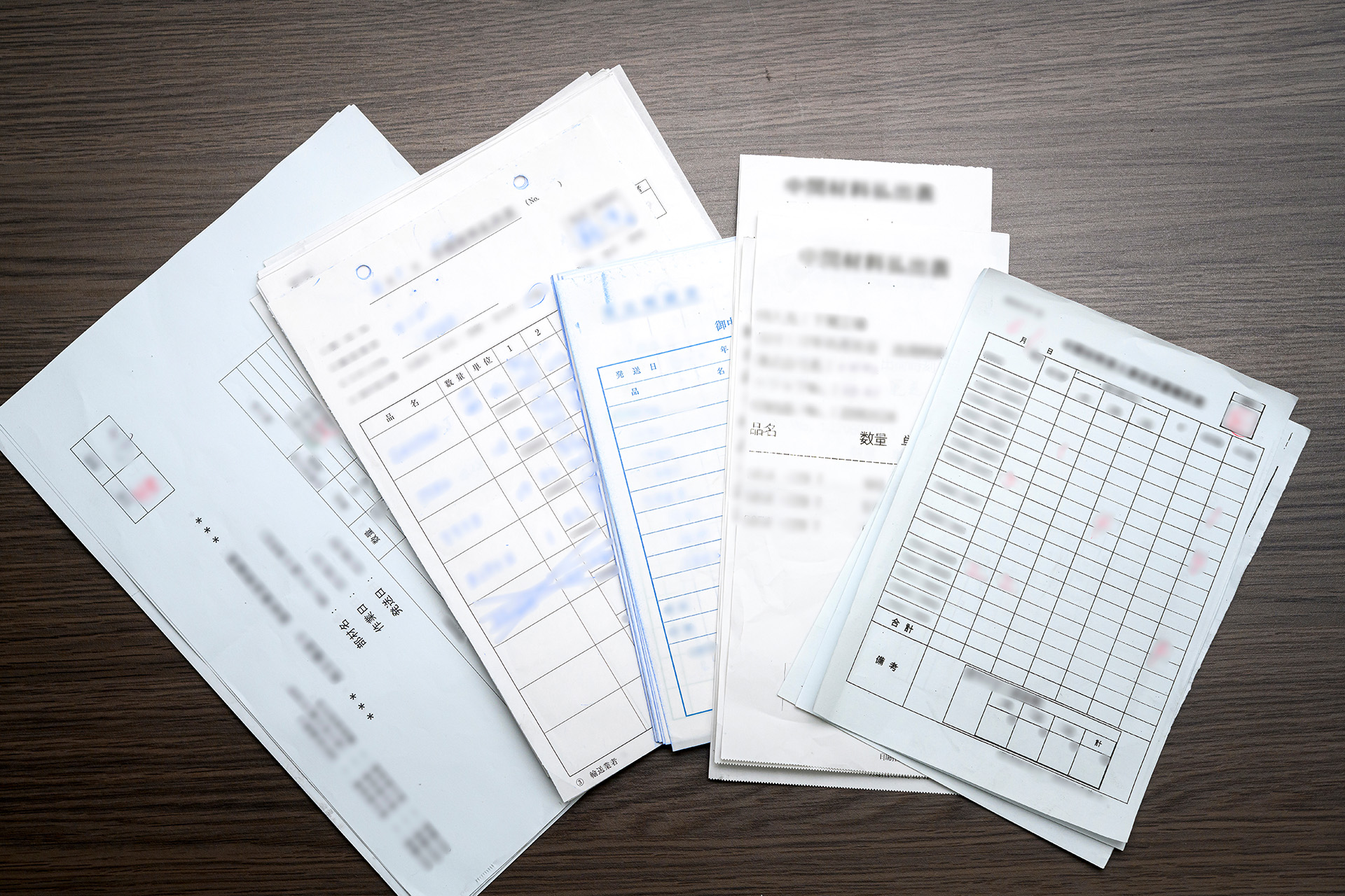 千石さん工場ごとに用紙が異なり、A4の普通紙、市販の複写式伝票に近い中間的なサイズのもの、大きいレシートのようなものなど、代表的な伝票だけでも5種類はあります。