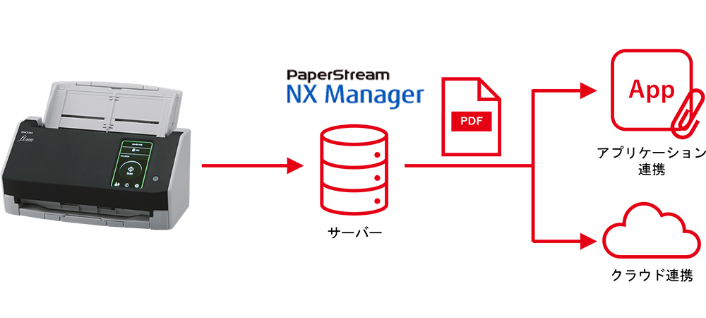 バーコード認識結果をフォルダー名やファイル名に指定したり、自動仕分け機能によりファイルを分割したり、スキャン後のデータ整理を支援します。