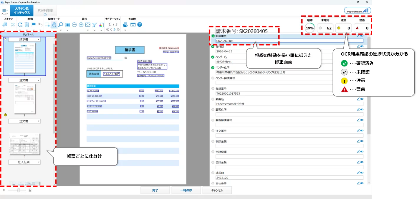 PaperStream Captureの標準機能に加えて、手書き文字のAI-OCRやチームでの作業分担など、より高度な機能を搭載した有償ソフトウェアです。