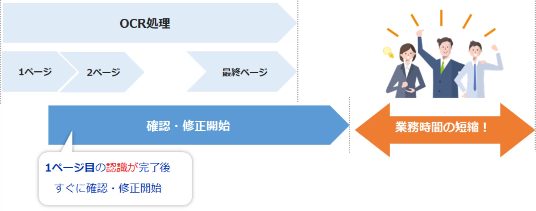 認識が完了したページから順次結果が表示されるため全ページの認識完了を待つことなく、