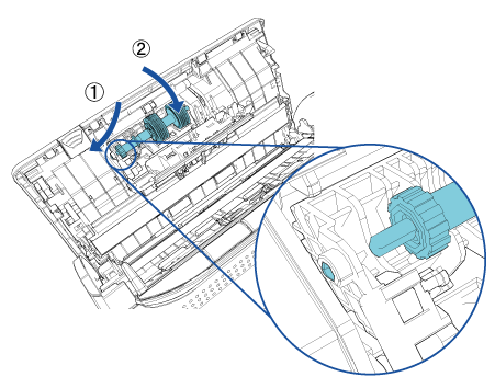 - Rotate the bushing on the pick roller in the direction of the arrow.