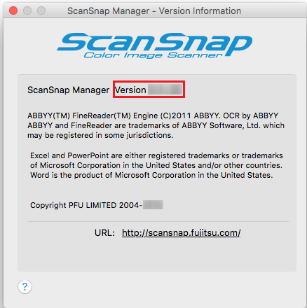 Confirm that the installed/updated version of ScanSnap Manager for Mac is displayed on the version information.