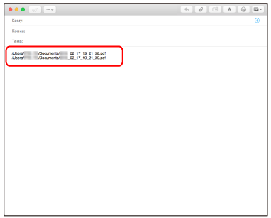 Файл сканированного изображения, который сохранен в папку совместного пользования в сети, может быть совместно использоваться с другими. В дополнение, можно сообщить другим пользователям путь папки назначения при помощи сообщения электронной почты, так как путь может быть создан в сообщении, автоматически.