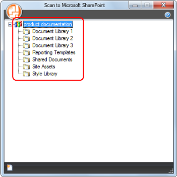 - В списке сайтов выберите библиотеку документов, в которую необходимо сохранить сканированное изображение.