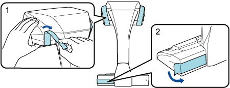 - Entfernung des Klebebands (1) und Siegels (2) vom ScanSnap