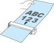 - 原稿の読み取る面を上向きにして、ScanSnap の給紙部にまっすぐ差し込みます。