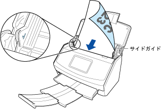 - 原稿の幅に合わせて、サイドガイドを移動します。