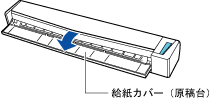 - ScanSnap の給紙カバー(原稿台)を開けます。