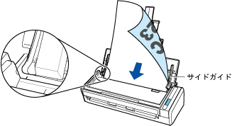 - 原稿の幅に合わせて、サイドガイドを移動します。