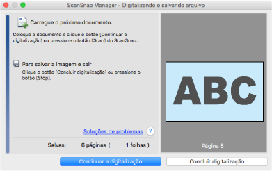 - Clicando o botão [Continuar a digitalização] na janela [ScanSnap Manager - Digitalizando e salvando arquivo]