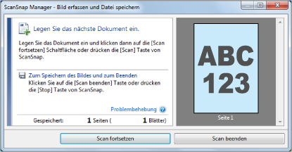 - Klicken Sie auf die [Scan fortsetzen] Schaltfläche im [ScanSnap Manager - Bild erfassen und Datei speichern] Fenster.