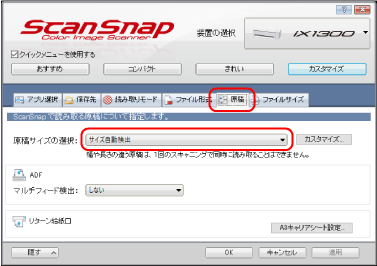 - 「原稿」タブの「原稿サイズの選択」で「サイズ自動検出」を選択します。