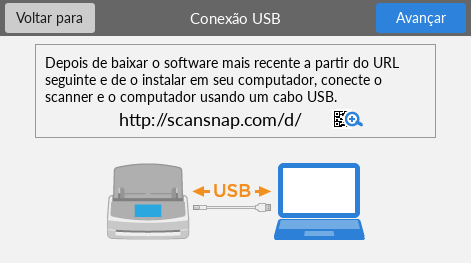Quando a tela [Conexão USB] é exibida no painel de toque, o procedimento de configuração para o ScanSnap está completo.