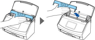- 打开ScanSnap的ADF进纸斜槽(盖板)以打开电源。