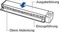 Öffnen Sie die obere Abdeckung und die Ausgabeführung.