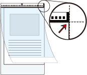 Allineare la parte superiore e la linea di piegatura del documento al Trasporto fogli in modo che non vi sia spazio nell'angolo in alto a destra del Trasporto fogli.