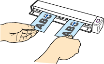 ATTENTIONWhen inserting the documents, insert them at least 10 mm (0.39 in.) apart from each other. If the space between the documents is less than 10 mm (0.39 in.), the scanned images may not be cropped correctly.