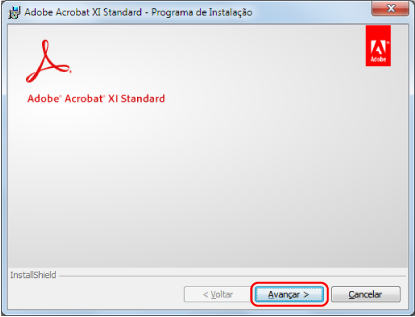 A janela de instalação do Adobe Acrobat XI Standard será exibida.