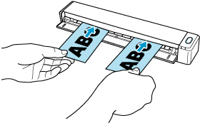 Cuando escanea documentos pequeños como tarjetas de visita y postales con el ScanSnap, puede insertar dos documentos a la vez o puede insertar el siguiente documento mientras se digitaliza el documento actual.
