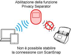 Per registrare ScanSnap in ScanSnap Home, disattivare la funzione Privacy Separator del punto di accesso wireless. Se è abilitata, non è possibile registrare ScanSnap.