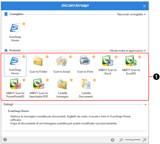 Mostra [ScanSnap Home] come applicazione consigliata.