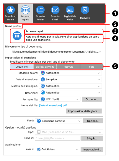 Quando è selezionato [Mac (Gestisci in ScanSnap Home)] o [Mac (Scansione verso file)] per [Tipo] in [Opzioni modalità gestione]