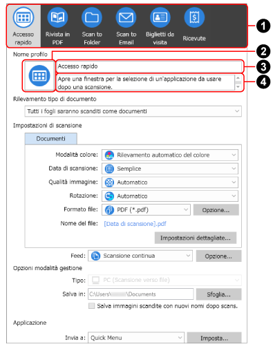 Per dettagli sulla finestra di impostazione per l'applicazione, consultare la Guida dell'utente di ABBYY FineReader for ScanSnap.