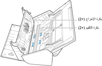 الزجاج (× 2، واحد على القسم العلوي لوحدة التغذية التلقائية للمستندات وواحد على الجانب المقابل)