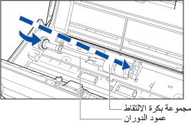 - قم بإزالة عمود دوران بكرة الالتقاط من ScanSnap.