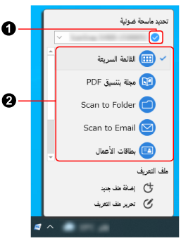 ) تعرض قائمة بوحدات ScanSnap التي تم توصيلها بالكمبيوتر المستخدم حاليًا.