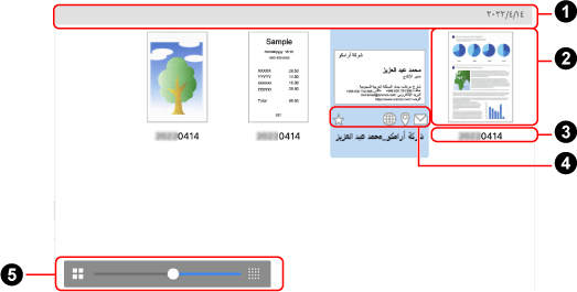 بالإضافة إلى ذلك، عندما يكون نوع المستند هو [بطاقات الأعمال] أو [الإيصالات]، يمكنك اختيار عرض أو إخفاء معلومات المحتوى من القائمة التي تظهر عند النقر فوق العنوان أثناء الضغط على مفتاح [control] على لوحة المفاتيح.