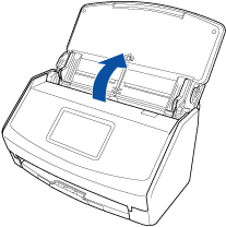 Abra la bandeja de entrada al ADF (cubierta) del ScanSnap para encenderlo.