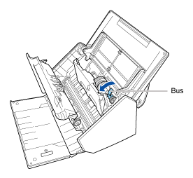 Til de rechterzijde van de bus iets op (ongeveer 5 mm), beweeg hem naar rechts en til hem vervolgens omhoog om de grijprol eruit te trekken.