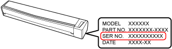 Można sprawdzić numer seryjny skanera ScanSnap (SER.NO.) w jeden z poniższych sposobów: