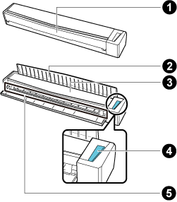Откройте для удаления застрявших документов, замены расходных материалов (набор валиков) или чистки внутри ScanSnap. Откройте для удаления застрявших документов, замены расходных материалов (подбирающий валик или сборная подкладка) или чистки внутри ScanSnap. |