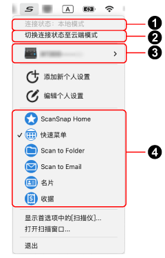 图标(ScanSnap连接状态的指示器)和菜单