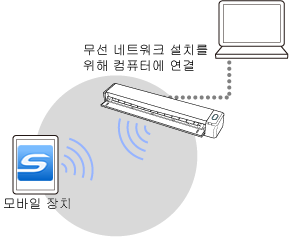 컴퓨터에서 ScanSnap Manager를 사용하는 경우 스캔한 문서의 이미지를 수신할 수 있도록 모바일 장치를 컴퓨터에 연결합니다.