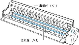 按下[Scan/Stop]按钮以转动转轮。轻轻擦拭掉污渍和灰尘并注意不要损坏转轮的表面。确保将其清洁干净,因为转轮上的残留物将会影响进纸性能。