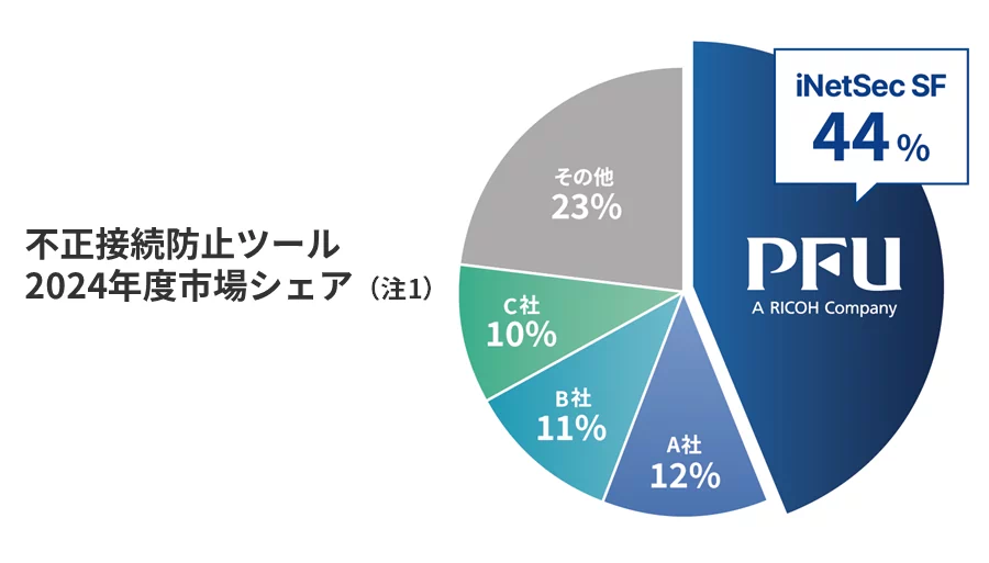 株式会社PFUのセキュリティ対策アプライアンス「iNetSec SF」は、不正接続防止ツール市場においてシェア44%を獲得し、7年連続でシェアNo.1(注1)を獲得しました。